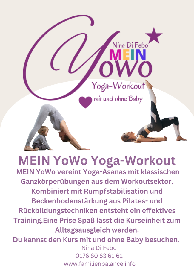 Hier im MEIN YoWo Yoga-Workout darf es dabei sein, aber es gibt keine Babyübungen.